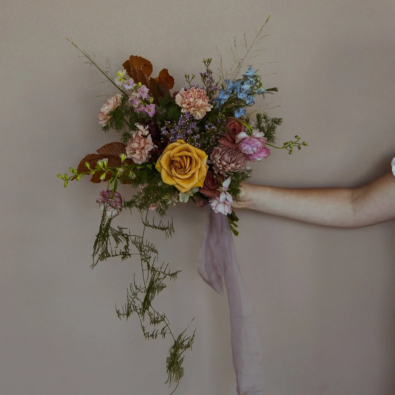 A beautiful and full bouquet custom designed to the preferences of the bride. Curated to the bride’s wishes on color, shape and texture.